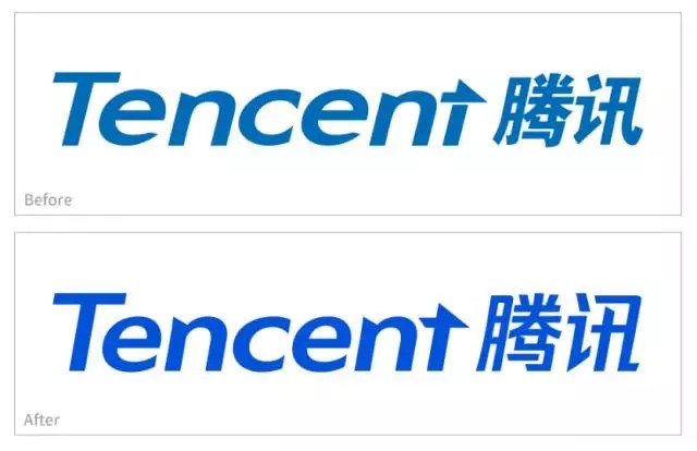 腾讯在20周年之际,将Logo做了更新,变化一是字变“斜”为“腾讯字体”,变化二是颜色变“蓝”为“腾讯蓝”(Tencent Blue)。据悉,这是腾讯与色彩机构Pantone Color Institute合作设计的腾讯品牌标准色,也是送给自己的20岁生日礼物之一。另外,作为品牌色,腾讯品牌标识、腾讯官方网站以及部分腾讯品牌周边都会以腾讯蓝作为标准色。