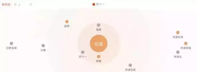 | 2017“双11”与核心词关联度最高的词语依次是“包装”、“纸箱”和“电商”