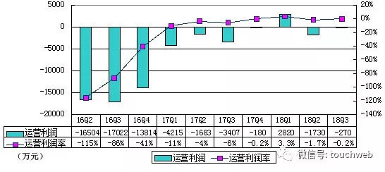 虎牙2018年第三季度的经营亏损为270万元(40万美元),而2017年同期的经营亏损为3410万元。