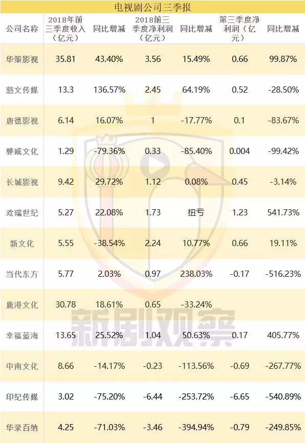 从净利润来看,第三季度:欢瑞世纪>华策影视>新文化>慈文传媒>。