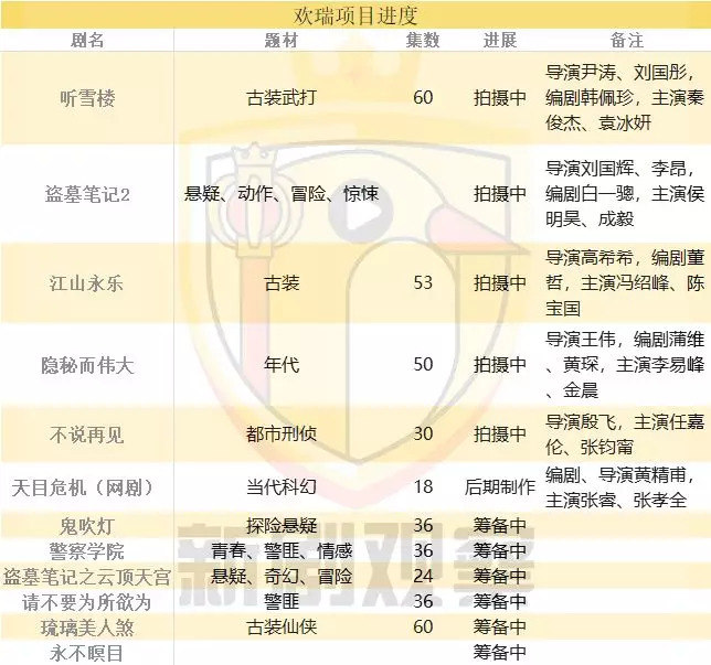 从欢瑞世纪的项目进度来看,欢瑞似乎受整体电视剧市场环境的影响不大,剧集一部接一部地拍摄。