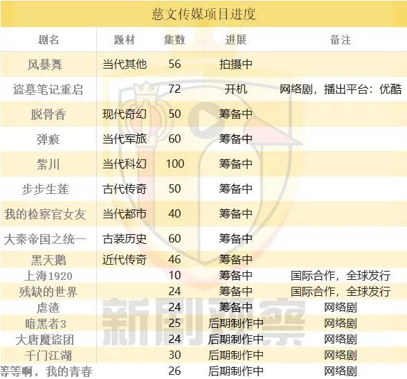 新剧观察(ID:xinjuguancha)将从具体项目推进程度详解慈文传媒、鹿港文化、欢瑞世纪三家上市公司在资本寒冬下的运营状况。