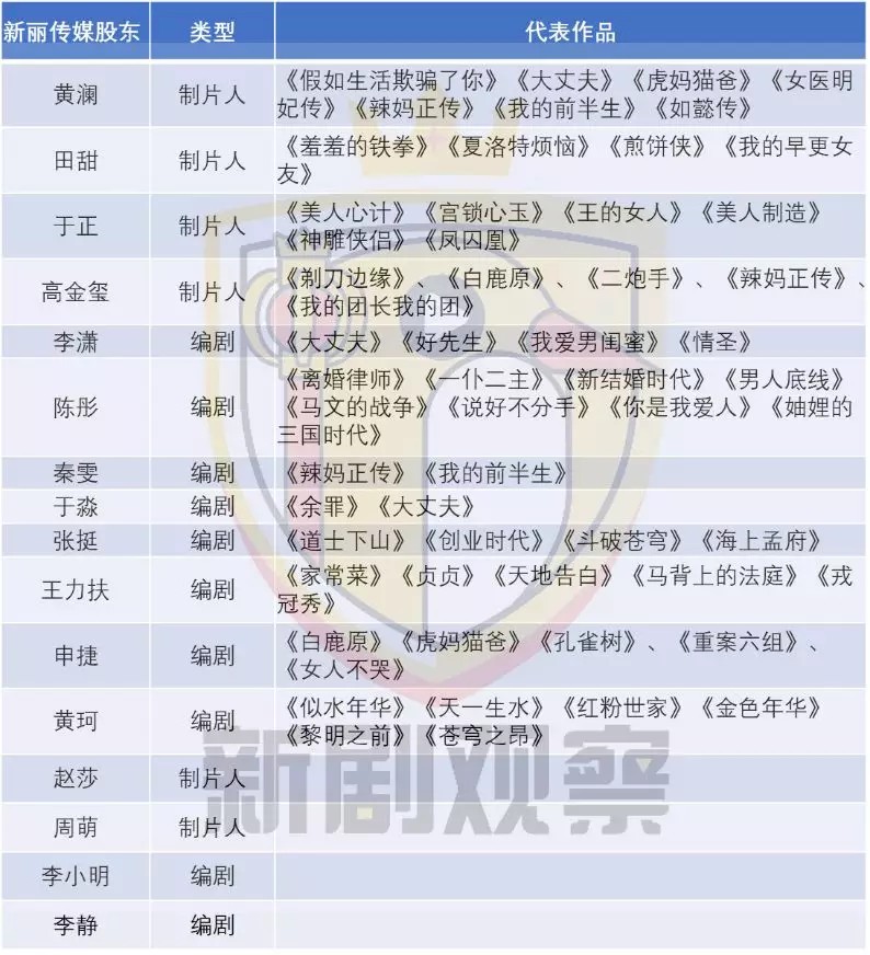 除了导演和演员之外,新丽传媒还拥有包括于正在内的大量制片人与编剧股东。
