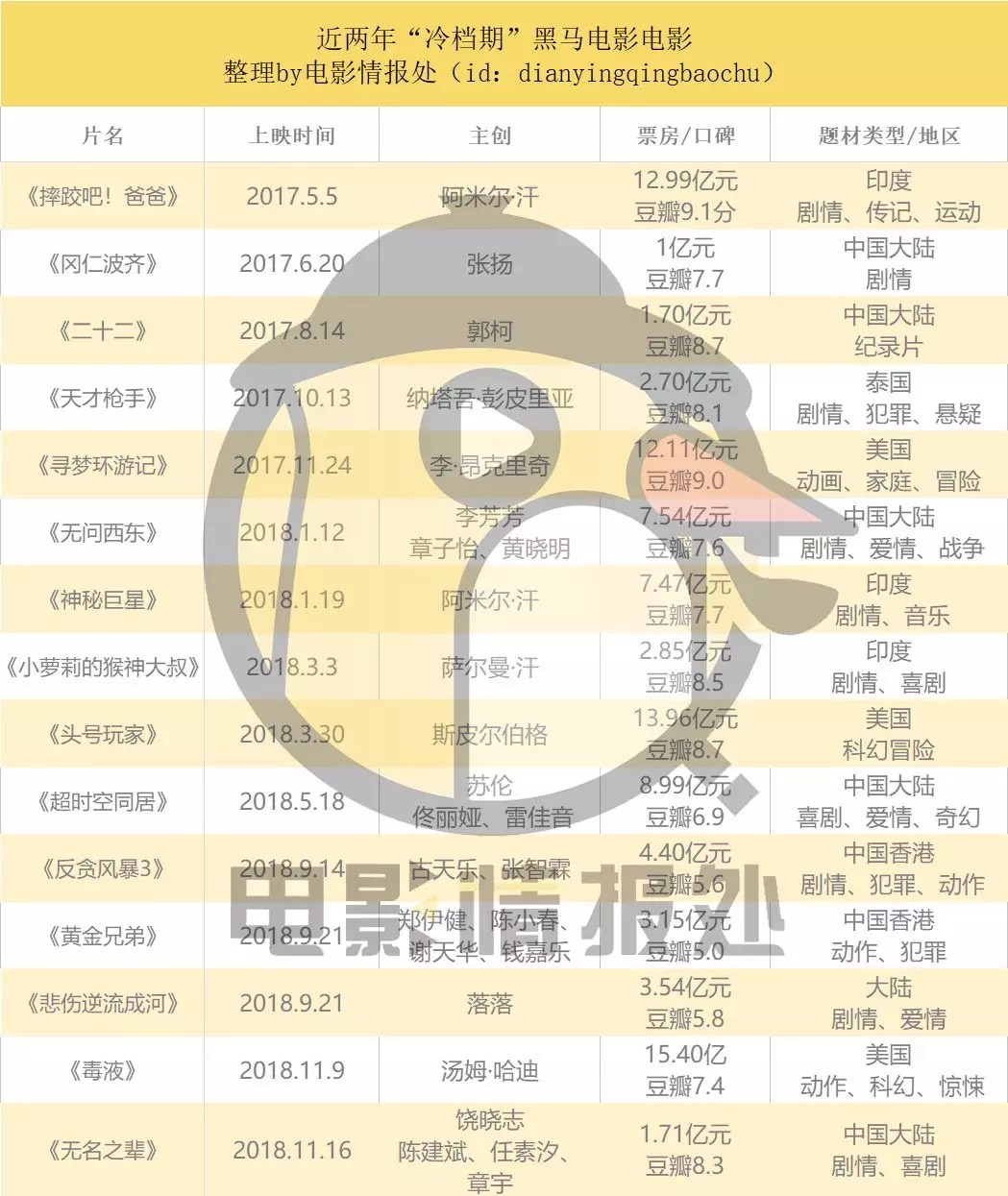 不过,情报君整理了近两年“冷档期”的黑马电影,发现不少作品都是出自新导演之手,更有不少作品是女导演执导。
