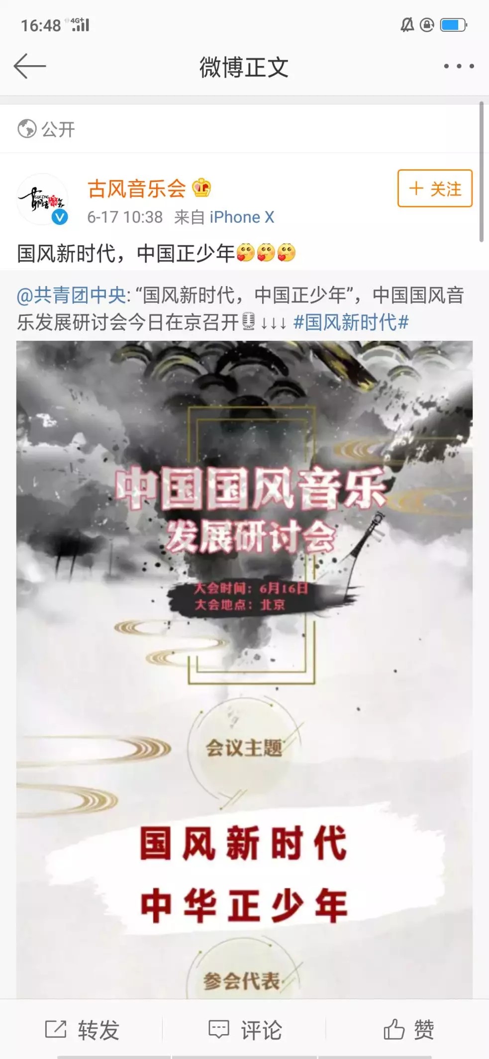 为了向国风靠拢,米漫传媒开始和共青团中央合作。微博“共青团中央”多次转发了古风音乐会的活动,今年6月,米漫传媒还和中国青少年新媒体协会主办了“中国国风音乐发展研讨会”,主题是“国风新时代 中华正少年”。