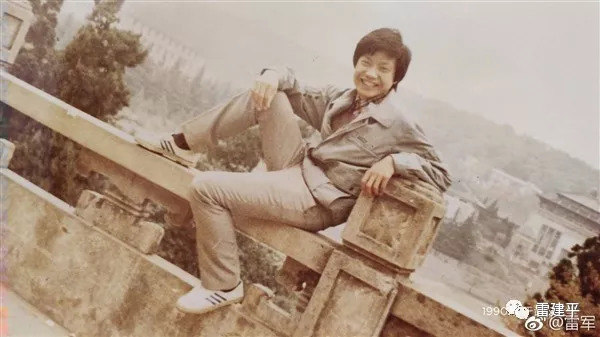 雷军还晒出了自己28年前(1990年)在武大的照片,他当时留着浓密的头发,衣着朴素,笑容灿烂地坐在栏杆上。