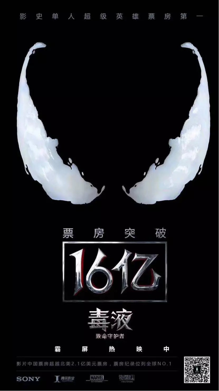 上映15天连续13天获得单日票房冠军,三千万大盘数据被一举拉升至2亿以上,单片票房占比最高超过八成,稳坐超英单体电影内地票房头把交椅......对于刚刚经历了“黑色10月”的中国电影市场而言,《毒液:致命守护者》的出现仿佛沙漠中的绿洲,重新点燃了全行业向着“600亿票房”迈进的希望。