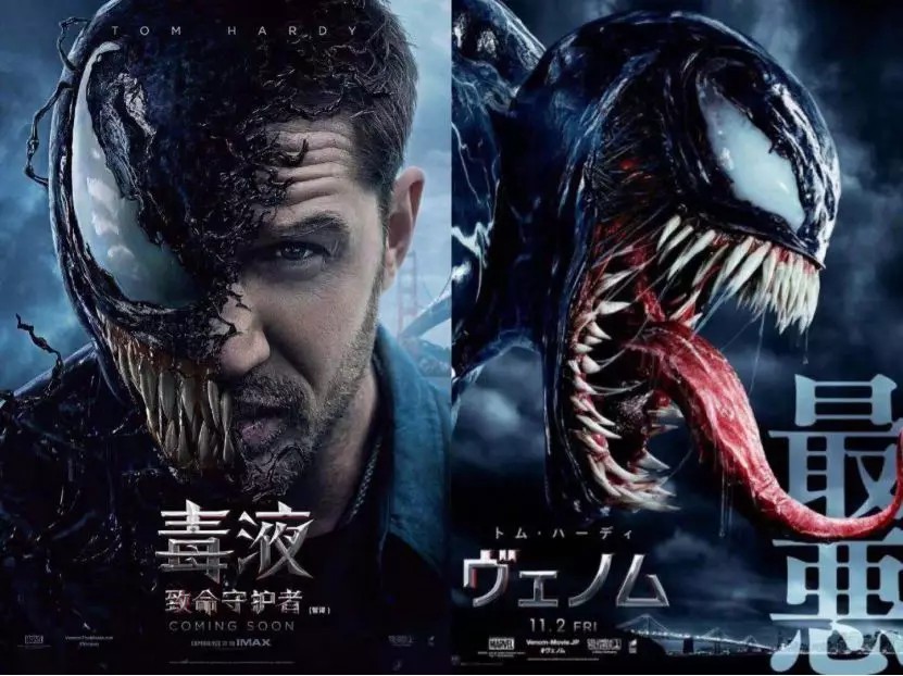 整个营销过程进行到十月底,廖旭翎发现,“声量特别好,决定打增量”。这个时候国内观众会发现,“毒液”的最新海报已经由“共生体”向“重口味”趋同。整个画面上只剩下邪气盈天的“毒液”,不见了汤姆·哈迪的身影,这个时候就意味着索尼中国的营销策略开始向怪兽片粉丝倾斜。
