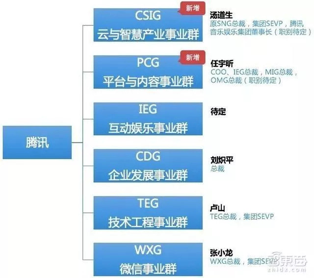 (腾讯2018年调整的组织结构图,图片来源智东西)