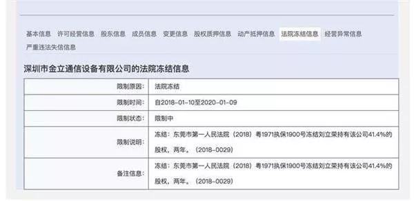 在去年年底,金立就被曝出资金危机,当时不断有“刘立荣欠巨额赌债”的消息传出。2018年初,金立名下多项资产被冻结,董事长刘立荣所持全部41.1%股权被法院冻结,而刘立荣选择前往香港,至今未归。
