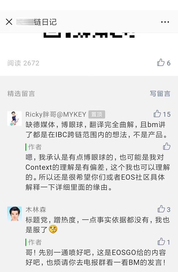 是否真如业内人士所说:EOS成也BM,败也BM,并不好说但此次BM在EOS电报群大谈设想与展望,无疑再次给造谣者打开大门。常年被解读的BM大概料到自己的发言会被严重误读,随后在EOS电报群中给自己的发言做了解释: