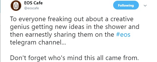 当然,并不只是国内媒体对其误解颇深,EOS GO与EOS Café在Twitter上报道了此事,但EOSCafé同时表示:你们不要太过害怕,别忘了这些想法来自于谁。隐含着他们已经对BM的心血来潮司空见惯,无需恐慌。