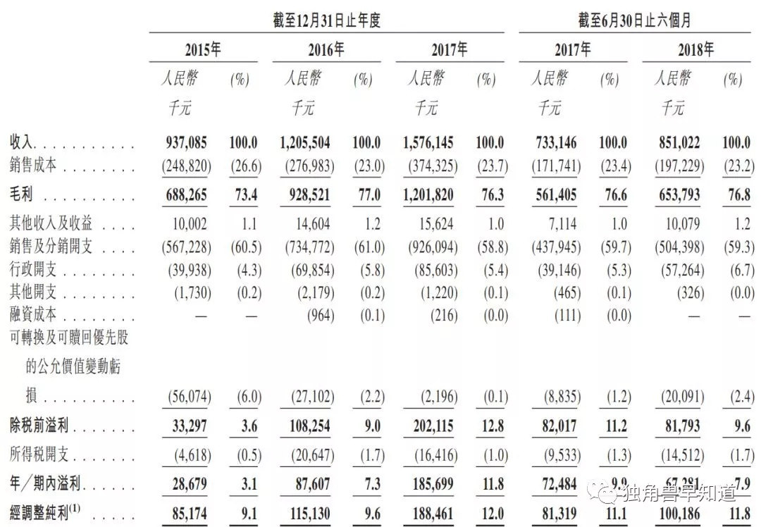据五谷磨房的招股书显示,2015年至2017年,五谷磨房的营收分别为9.37亿元、12.06亿元、15.76亿元,毛利分别为6.9亿元、9.3亿元、12亿元,毛利率从2015年的73.4%增长至2017年的76.3%。今年上半年,五谷磨房的营收为8.51亿元,毛利6.54亿元,毛利率升至76.8%。