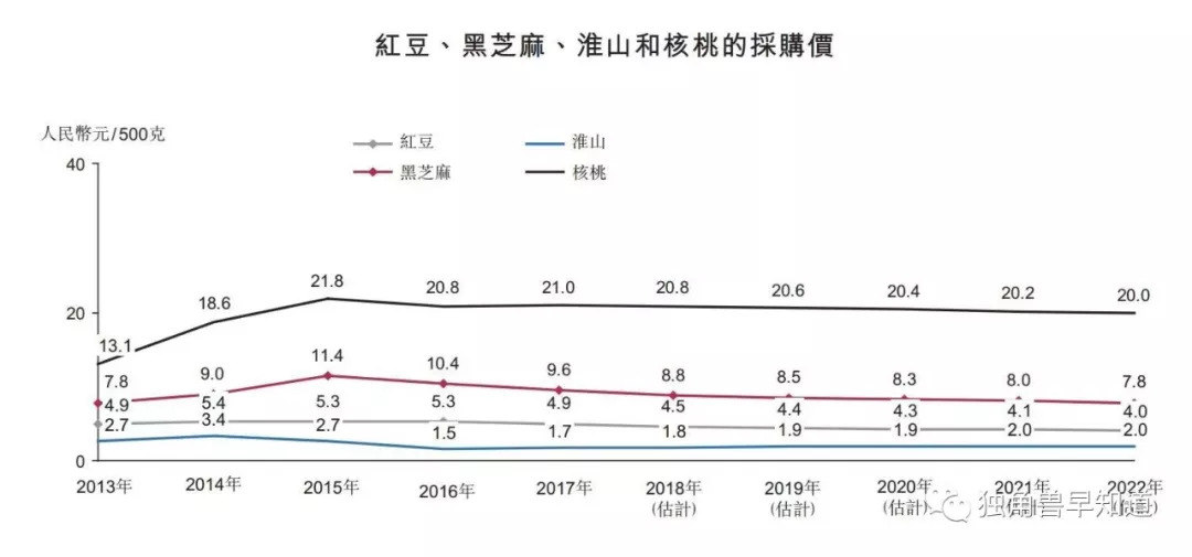 N姐(ID:iponews)在研究过程中发现,目前红豆、黑芝麻、淮山和核桃的采购价正处于逐年下降的过程中,由此可预计今年下半年至2022年,五谷磨房的毛利率有望进一步提升。