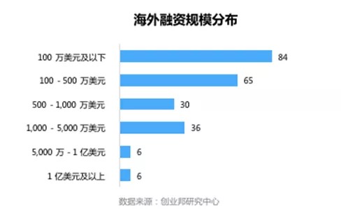 本周国外融资事件的融资规模主要集中在100万美元及以下,共84起。融资额达1亿美元以上的案例有6起。
