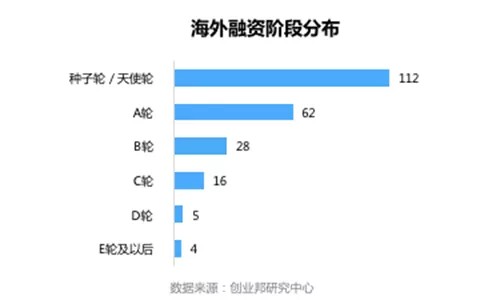 本周国外融资事件的融资轮次主要集中在种子轮/天使轮、A轮及B轮,其中种子轮/天使轮融资事件最多112起;A轮次之,62起;B轮融资事件数量第三,28起。