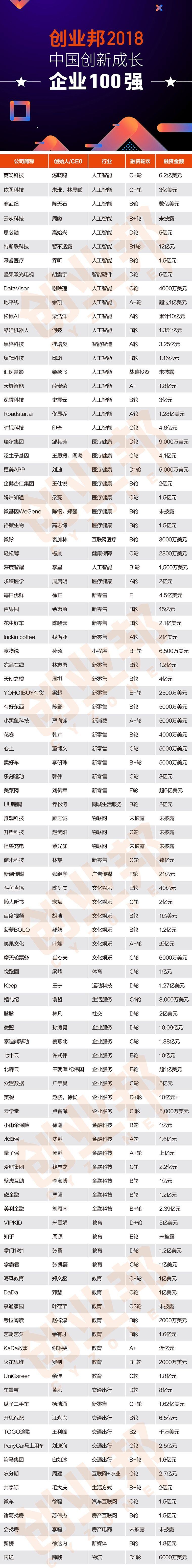 12月6日下午,2018创业邦100榜单出炉。今年是创业邦连续第十年推出“中国创新成长企业100强”榜单。在今年的榜单中,创业邦以创新能力、成长潜力、团队管理能力及连续六季度业绩等为核心指标进行综合评分,从数千家企业中甄选出100家最具潜力的创新成长企业。