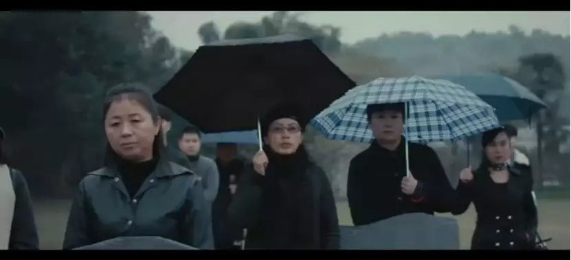 怎么办呢?“他找来的时候其实我们大的空镜已经拍了,只剩近景和特景。”能照到墓碑的近景,后来剧组想了个办法:把“牌位”拆下底座只留上半部分,后面插了根筷子,让扮演悼念者的群演一手举伞,一手举着筷子,这样镜头扫到腰部,正好可以看到墓碑。