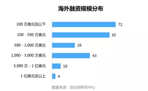 本周国外融资事件的融资规模主要集中在100万美元及以下,共72起。融资额达1亿美元以上的案例有4起。