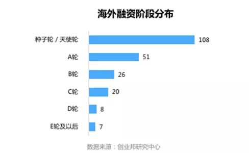 本周国外融资事件的融资轮次主要集中在种子轮/天使轮、A轮及B轮,其中种子轮/天使轮融资事件最多108起;A轮次之,51起;B轮融资事件数量第三,26起。