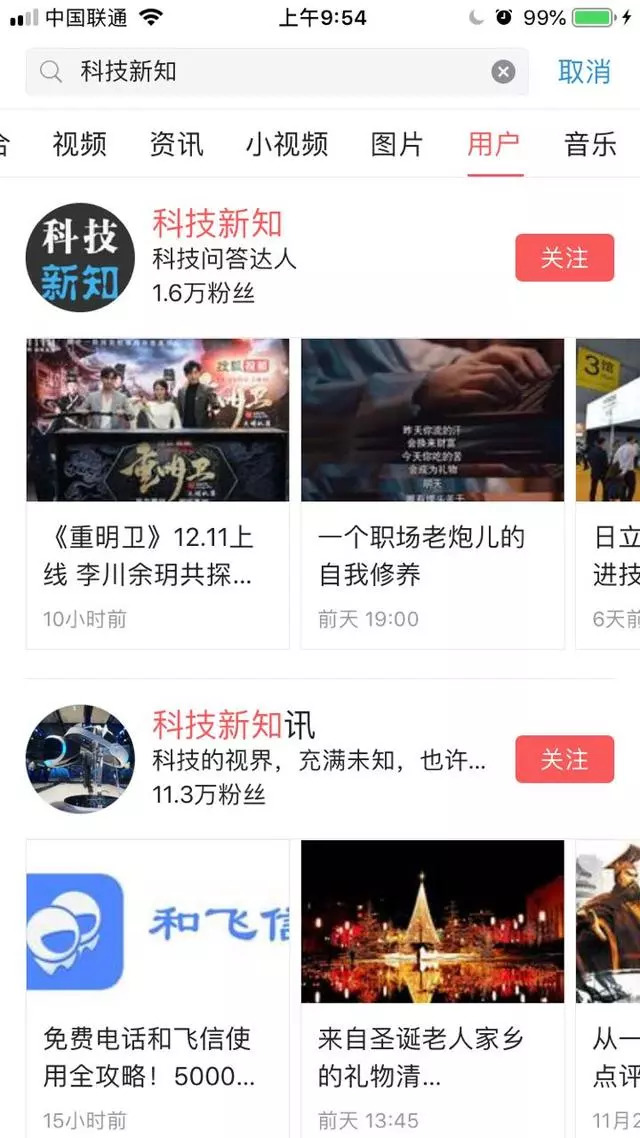 如这两张截图显示,今日头条与爱看搜索内容完全一致。