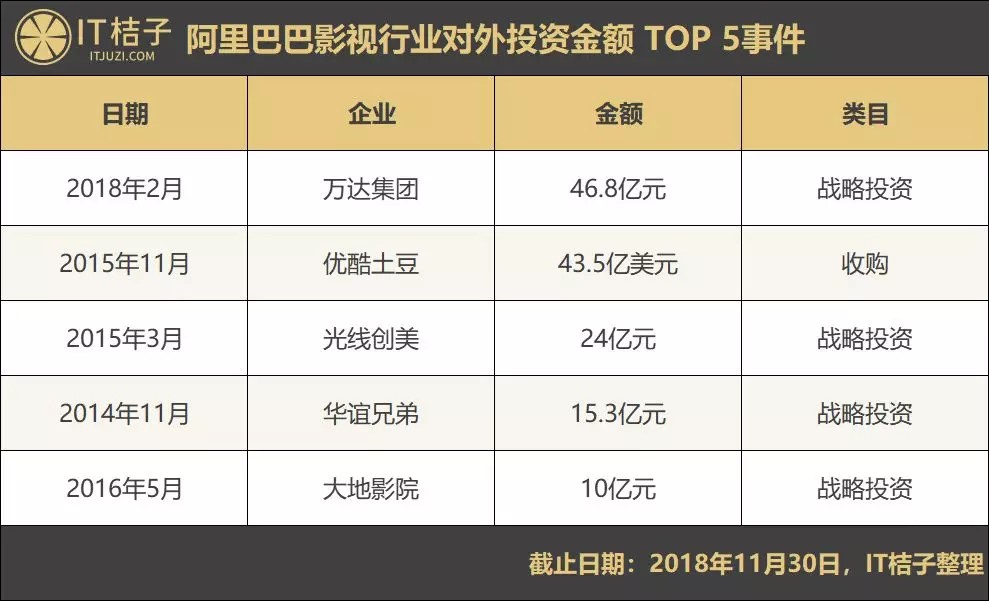 在上游 IP 内容方面,阿里自 2015 年起也陆续投资了一些「明星」项目,如吴奇隆的稻草熊影业、《鬼吹灯》制作方向上影业、《我不是潘金莲》出品方悦凯影视……