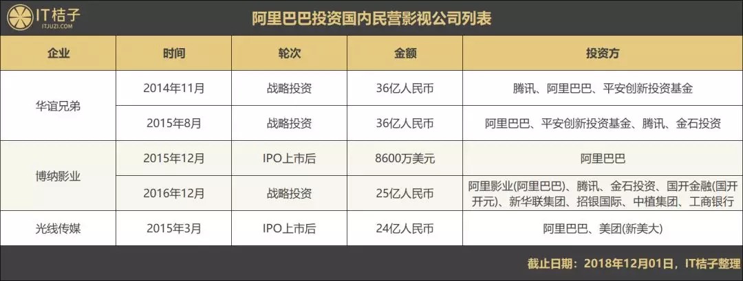 至今阿里至少已经投资了超过 100 个亿在「购买」影视公司方面,买下了涉及影视制作、发行、宣传、票务等多个领域的头部企业。