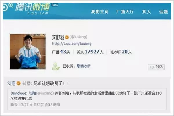 为争夺名人入驻,腾讯使出浑身解数说服各路明星和意见领袖转投自己,不惜以千万价格签下刘翔、韩寒、徐静蕾等明星。就连马化腾也一度亲自上阵,邀约熟人入驻腾讯微博。
