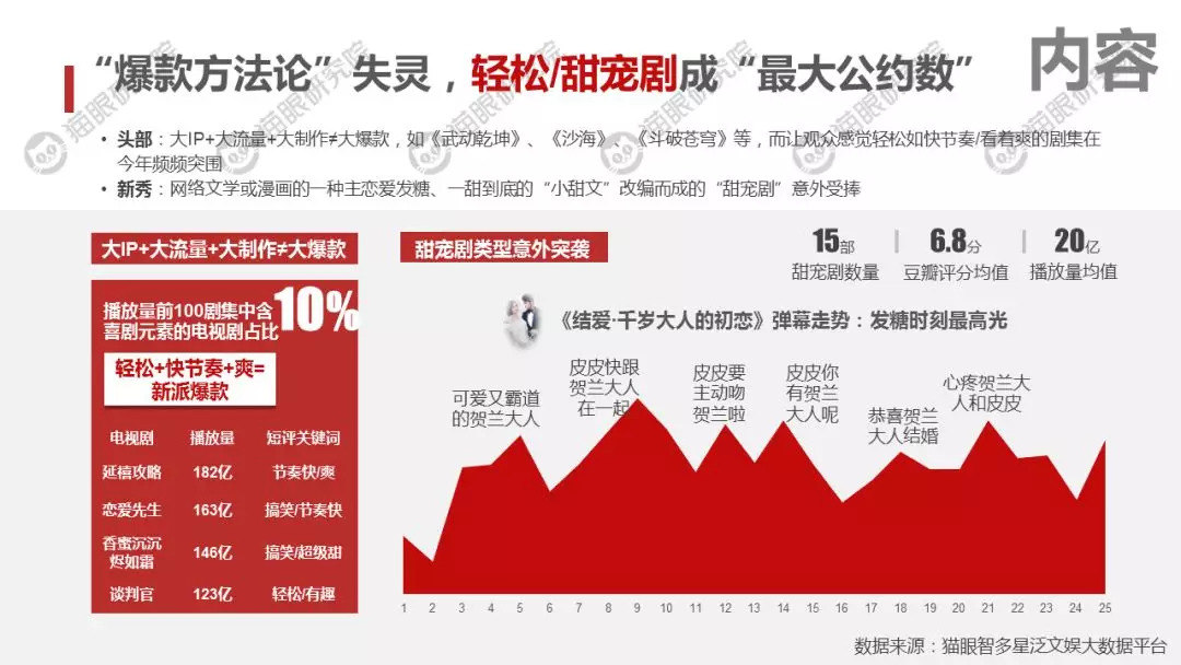 正如猫眼研究院《年度报告》分析显示,爆款方法论失灵之后,“轻松+快节奏+爽”的爽剧和甜宠剧正成为新一代观众追剧的新宠。