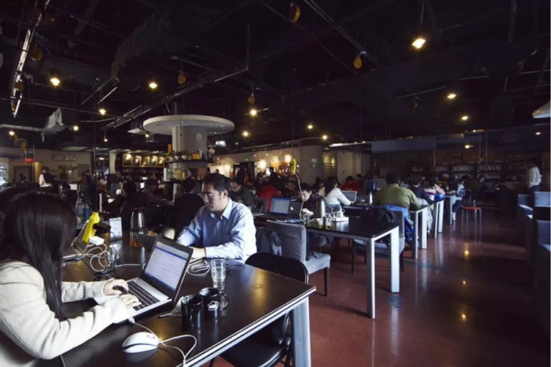 苏菂想把这里打造成乌托邦,不单是降低场地成本,还能拉上投资人参与。屋顶是刷黑的裸露管道,到处挂着吊灯和屏幕,朝气蓬勃的演说者和听众,咖啡厅里总是座无虚席。vivika把这看作风投和创业者的集体相亲,发了篇文章《美国人应该真正害怕中国什么》。