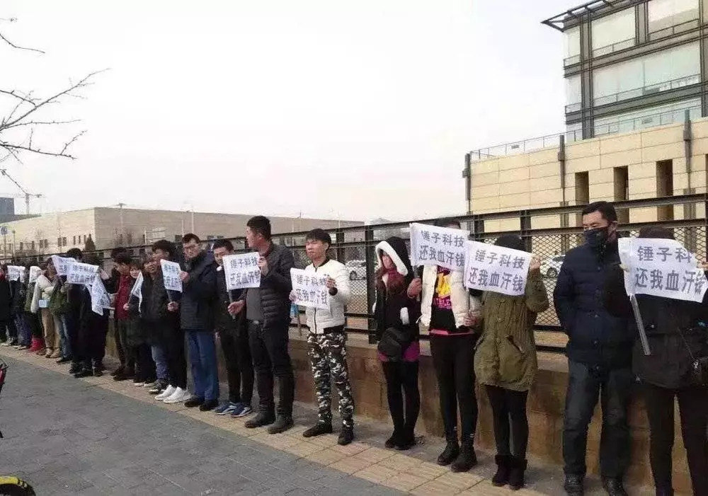 12月19日,锤子科技的天津供应商华维诺电子有限公司带着40-50人聚集在数码港大厦门口要钱。据悉,他们早上6点从天津坐大巴赶来,并且提前准备了充足的干粮和水,实行轮班倒吃盒饭,准备打个持久战。讨债队伍表示,锤子科技拖欠华维诺供应款已经有9个月,共涉及款项2000余万。