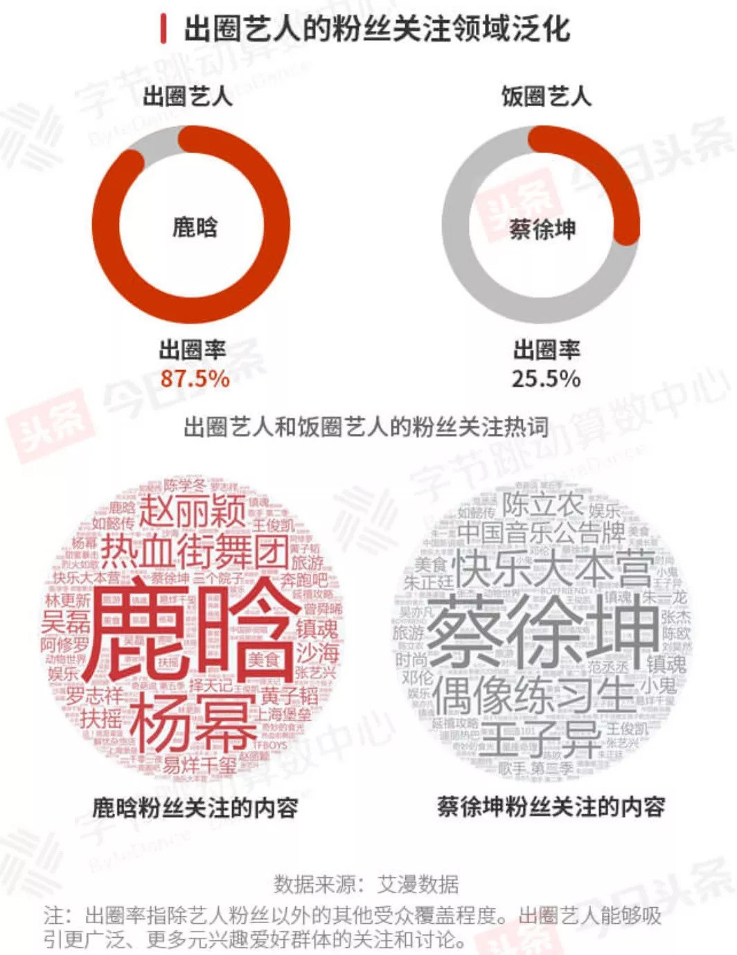 不过,当下流量明星也都面临着不少困境。虽然今年一年如NINE PERCENT、乐华七子等新团不断收获代言,被资本市场认可,但出圈难度较高,白皮书显示,老牌偶像粉丝关注领域泛化且地域下沉范围更广,如鹿晗的出圈率达到了87.5%,但是新偶像出圈不易,蔡徐坤的出圈率仅有25.5%。
