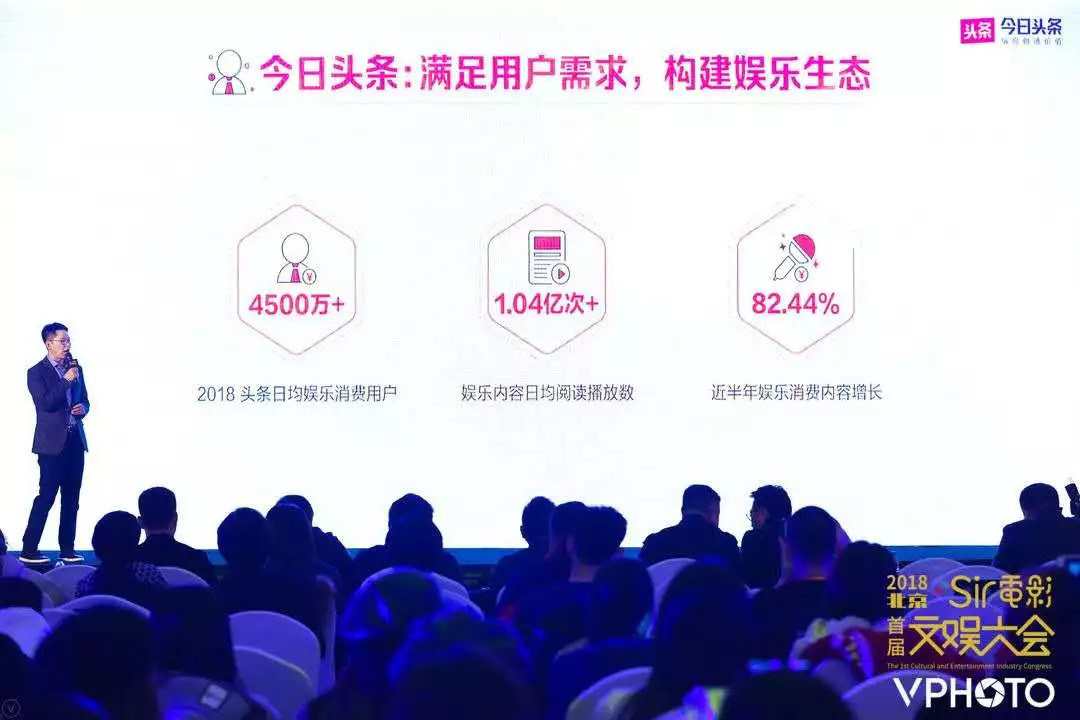 近一年来,从电影到电视剧领域,从综艺到艺人领域,今日头条的娱乐营销能力不断提升,致力为整个娱乐行业赋能。Sir电影首届文娱大会上,洪绯也公布了一组数据,今日头条2018年日均娱乐消费用户已经达到了4500万+,娱乐内容日均阅读播放数达到了1.04亿次+,近半年娱乐消费内容增长82.44%。当下,借助大数据辅助,今日头条从内容发起、内容发酵、内容传播上已经形成了全链路深度娱乐内容运营生态。