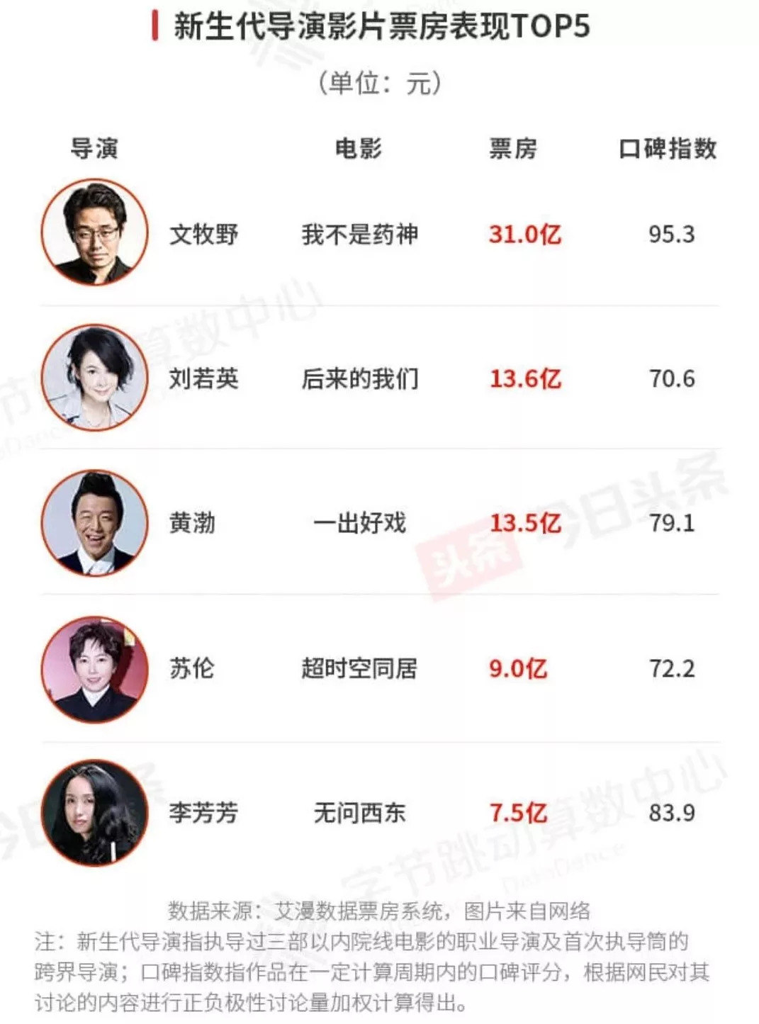 影片表现上,头部电影的票房集中度大大提高,今年前5部影片票房占比从2017年的3%上升到了18%;更贴近生活的现实主义题材影片迎来春天,今年4部现实主义题材影片共拿到了45亿的票房,《我不是药神》《无名之辈》等均实现了票房逆袭。而现实主义题材中的“小人物”因更易引观众共情,票房号召力也更高,如《找到你》中马伊琍饰演的保姆角色在头条热度贡献达到了67.7%。