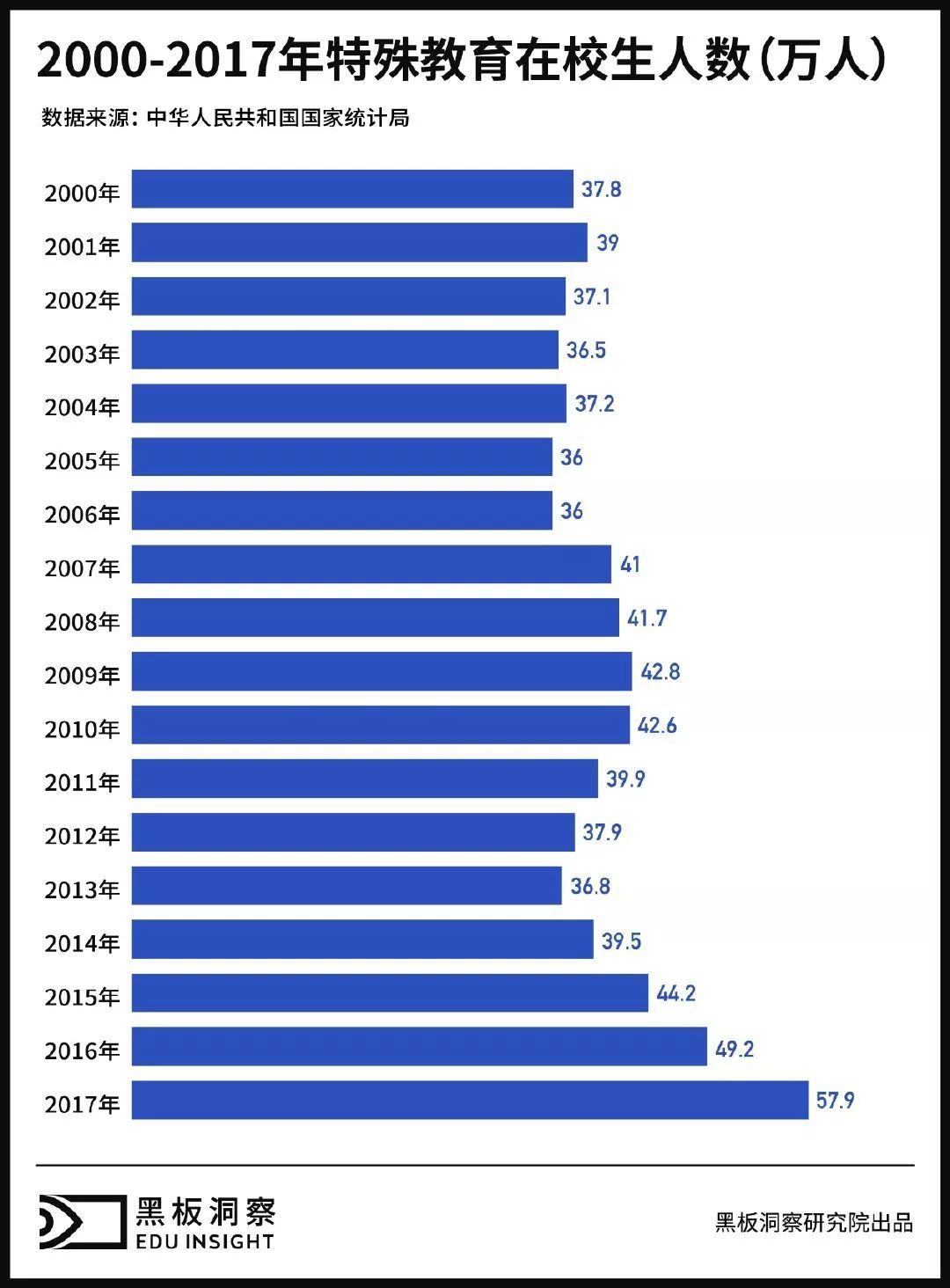 事实上,在2000年以前,报告中对特殊教育的称呼还依然是“盲聋哑、弱智教育”,2000年以后的报告中,才被统称为特殊教育。