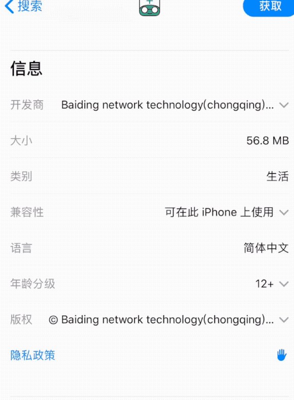 这款叫 “ 白丁健康医生 ” 的 App ,点击 App Store 里的隐私链接以后,跳转了百度的隐私政策页面。。。