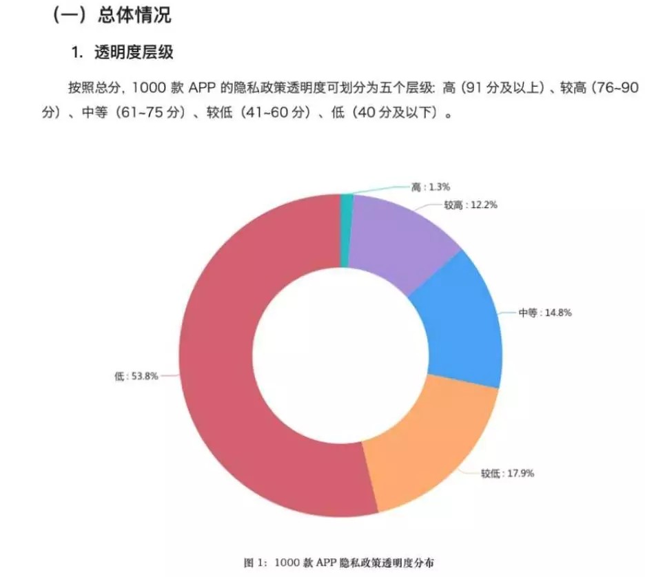 这份报告的评测参考了各种资料,给 1000 款 App 的隐私政策透明度打了分,并且划分了 5 个层级⬇️