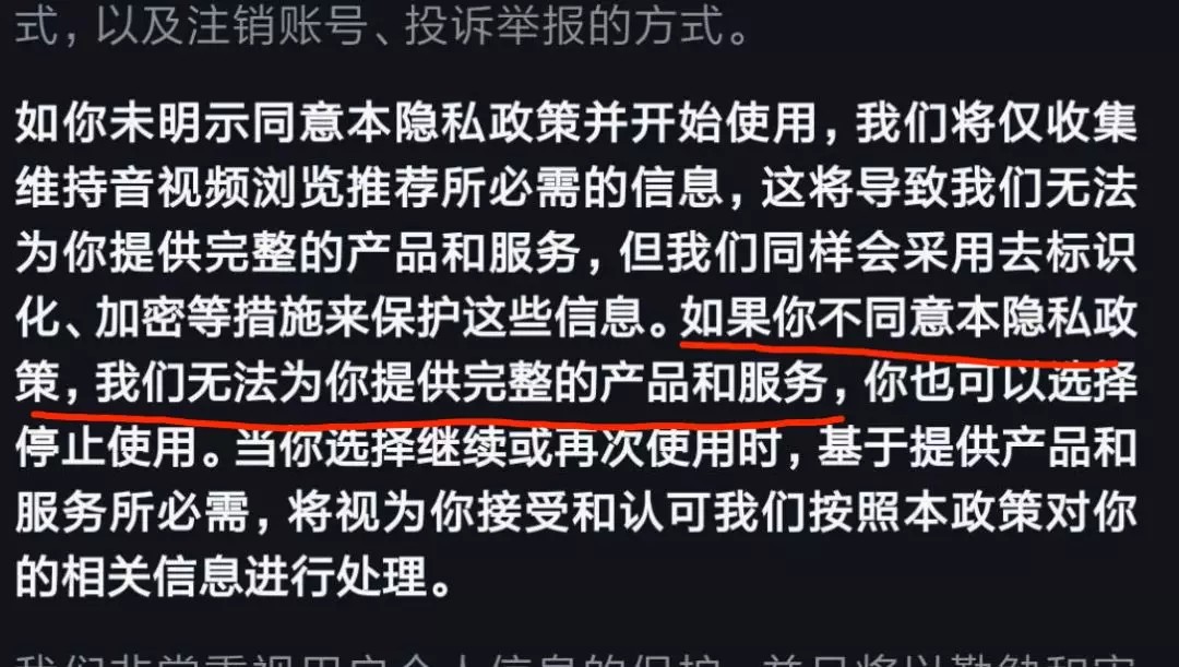 “ 抖音 ” 现在不同意条款也仅仅不能使用完整服务,不影响基本使用