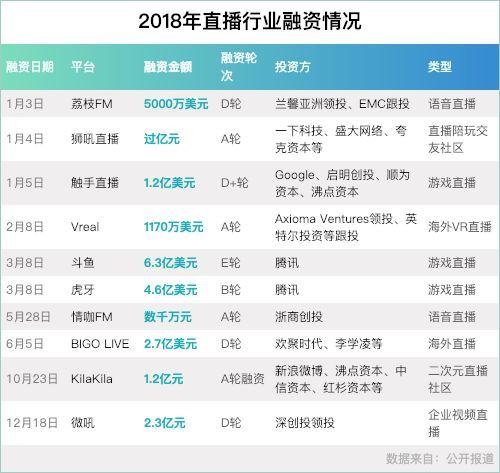 全年逾百亿融资额过半来自斗鱼虎牙 下半年仅3起融资