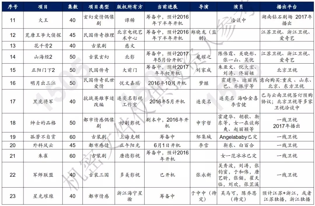 下图所示为2017年年初某知名PE机构代为发行的影视基金募集材料中截取的部分拟投项目情况。