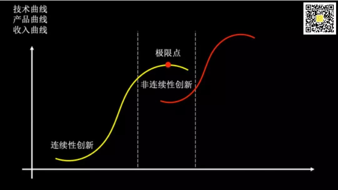 换句话说,新技术和老技术并不是同一条S曲线,而是一条新的第二曲线。新旧曲线之间并不是继承的关系,而是一种竞争、革命、替代的关系。