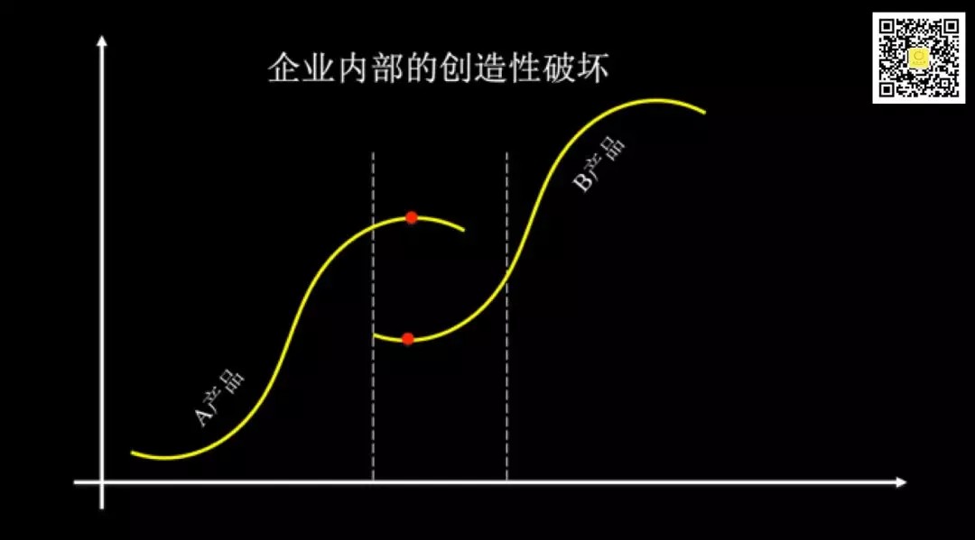 刚刚说过,企业要勇于不断地攻击自己,在内部对自己进行破坏。对内破坏自己原有的主营业务,我们把它称为第二曲线创新。