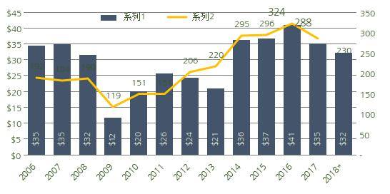 不过,2018年前三季度,美国VC基金募资额达320亿美元,预计全年数据将很可能超过2017年,延续自2014年以来的繁荣。相较于中国市场,美国VC市场少了些大起大落。