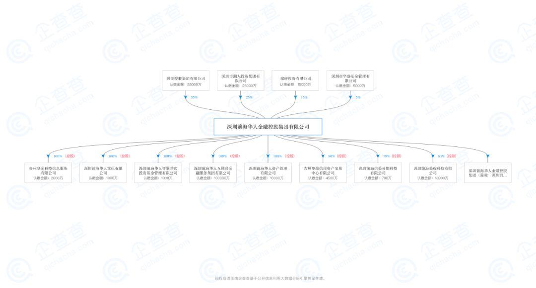 官方资料显示,华人金融是一家互联网融资服务平台,运营主体是深圳前海华人互联网金融服务集团有限公司,股东为深圳前海华人金融控股集团有限公司(下称“华人金控”)。