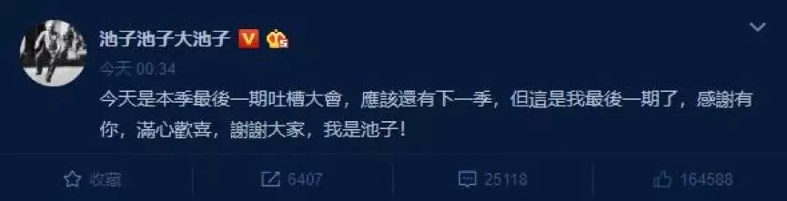 和李诞的酒吧绯闻一样,从素人到网红,池子在成名之后也曾因“diss吴亦凡”和“取笑霍金”等言论惹来颇多争议,在“真性情”和“人设”间屡遭质疑,多次被推到风口浪尖。池子萌生的退意,或许并非心血来潮,早在去年11月,他就曾发微博“大笑是一件很累的事情,你们不要看我开心,我其实很累”,粉丝看到后直呼心疼。