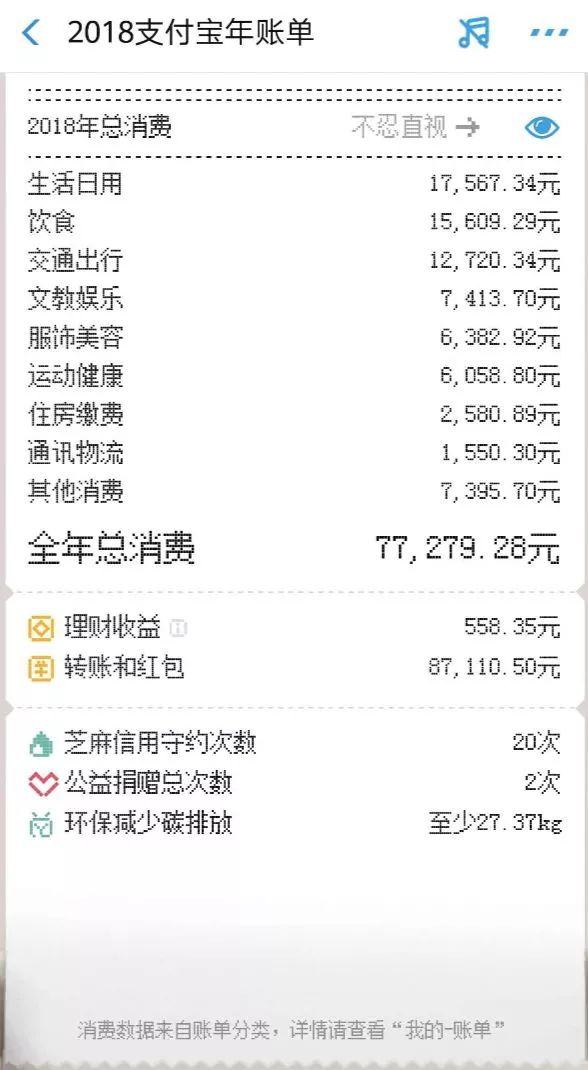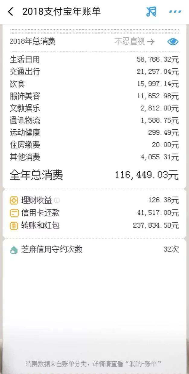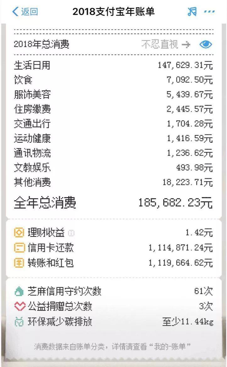 2018年我支付宝总消费18w,但转账和红包金额超过100w——其实是公务转账。典型的拥有的不多,但见过的不少。