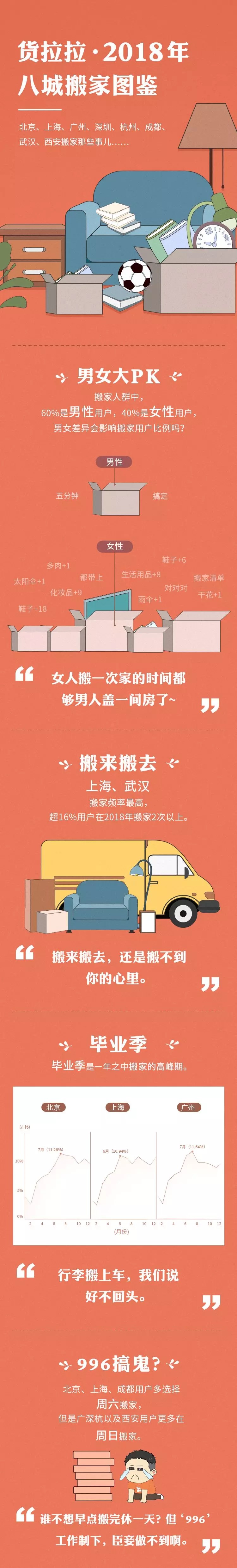 今天,货拉拉大数据中心发布了《货拉拉·2018年搬家大数据》(部分用户画像数据来源于问卷调查),不看不知道,一看吓一跳!其中居然有很多不得了的事情~比如——
