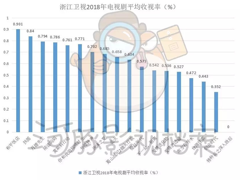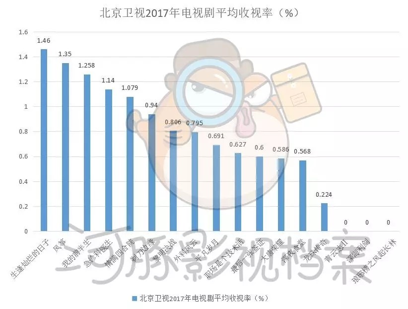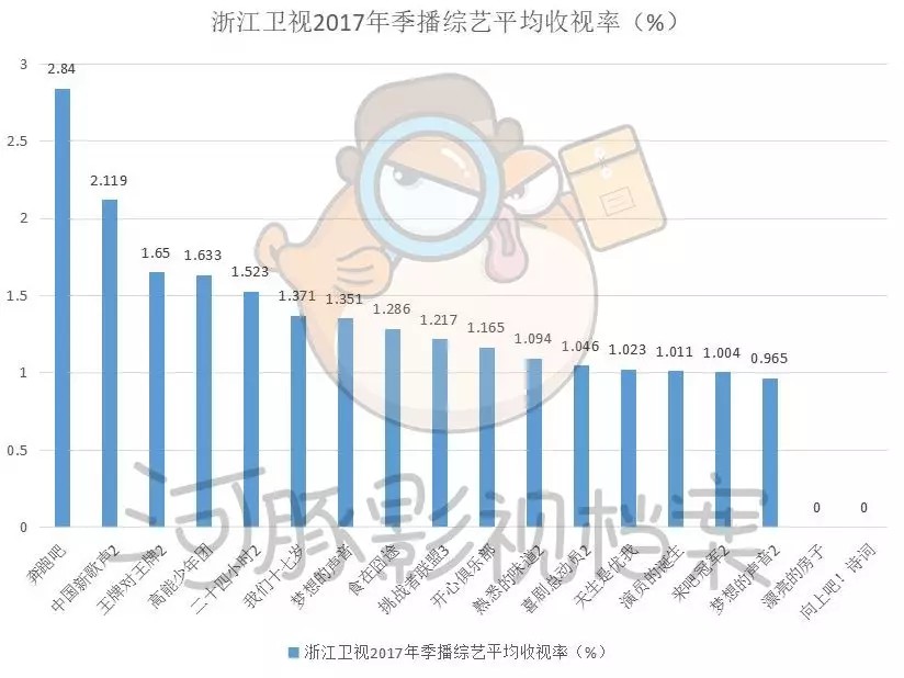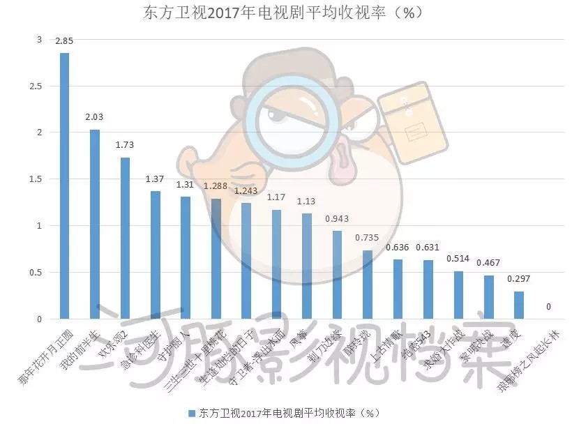 同样的尴尬出现在浙江卫视上。2017年浙江卫视尚有《欢乐颂2》《三生三世十里桃花》两部平均收视率破1的剧为其撑起电视剧门面。