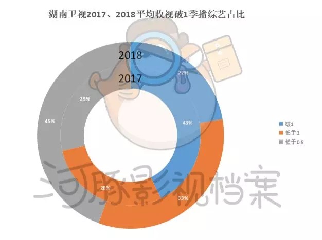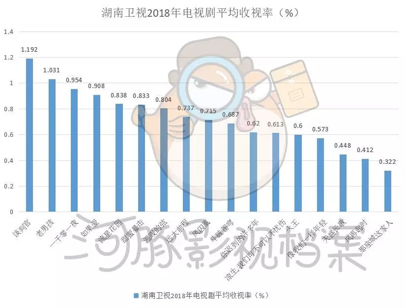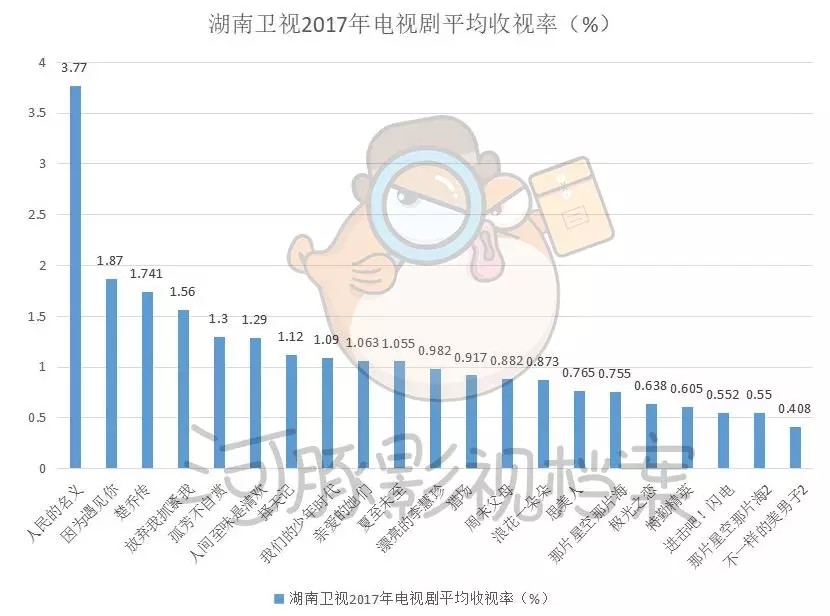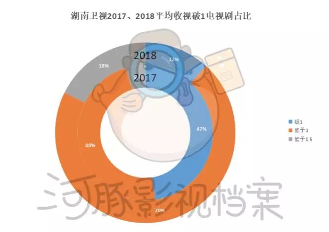 娱乐资本论矩阵号河豚影视档案整理的数据显示,2018年,湖南卫视平均收视破1的剧仅占12%,而这个数字在2017年是47%,同比下降30%,滑坡明显。2017年,抛却《人民的名义》,湖南卫视依然有9部电视剧收视良好。