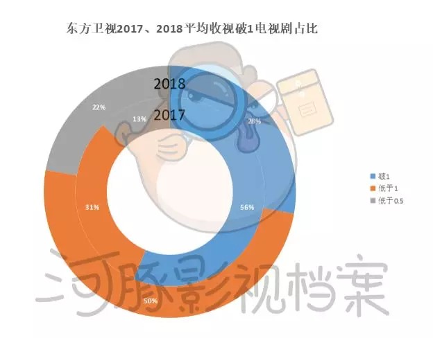 到了2018年,东方卫视依然保持了这种优势,前段时间收官的《大江大河》在东方卫视取得1.26的平均收视,而在北京卫视则为0.87;剧王《恋爱先生》也较江苏卫视高出0.5个百分比。时髦的上海电视观众对都市情感剧的热爱始终如一。但与自身相比,东方卫视剧集出现收视普遍下跌的现象,破1剧集占比相较2017减半。